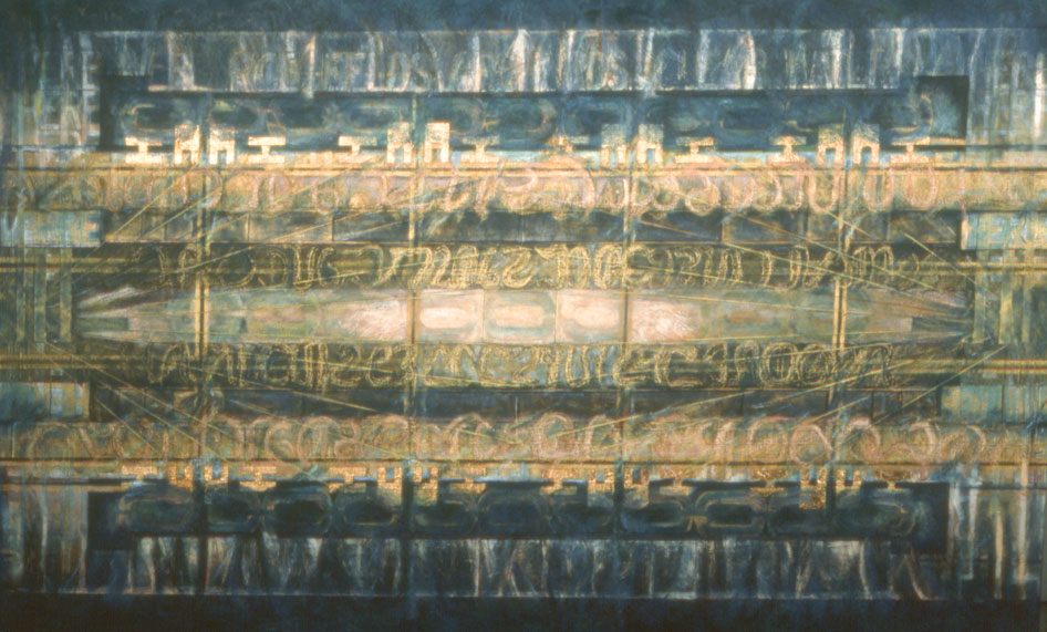 Mythologies "Inscription 1" Acrylic, oil and metal leaf; 58" X 35"